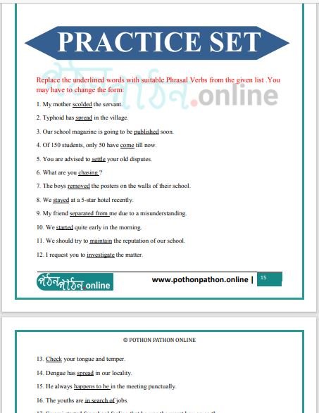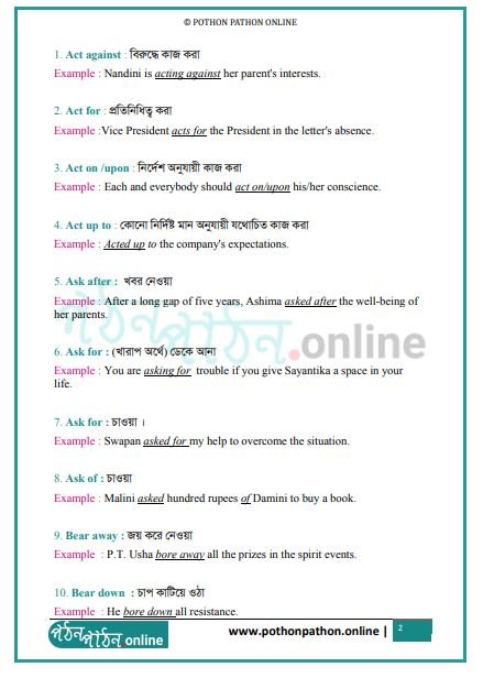 Dear Students, welcome to the official website of Pothon Pathon Online. In this post we have shared the List of Phrasal Verbs with their bengali meaning and examples. This list is very helpful for the students of Class 10 Madhyamik and other Competitive Exams.